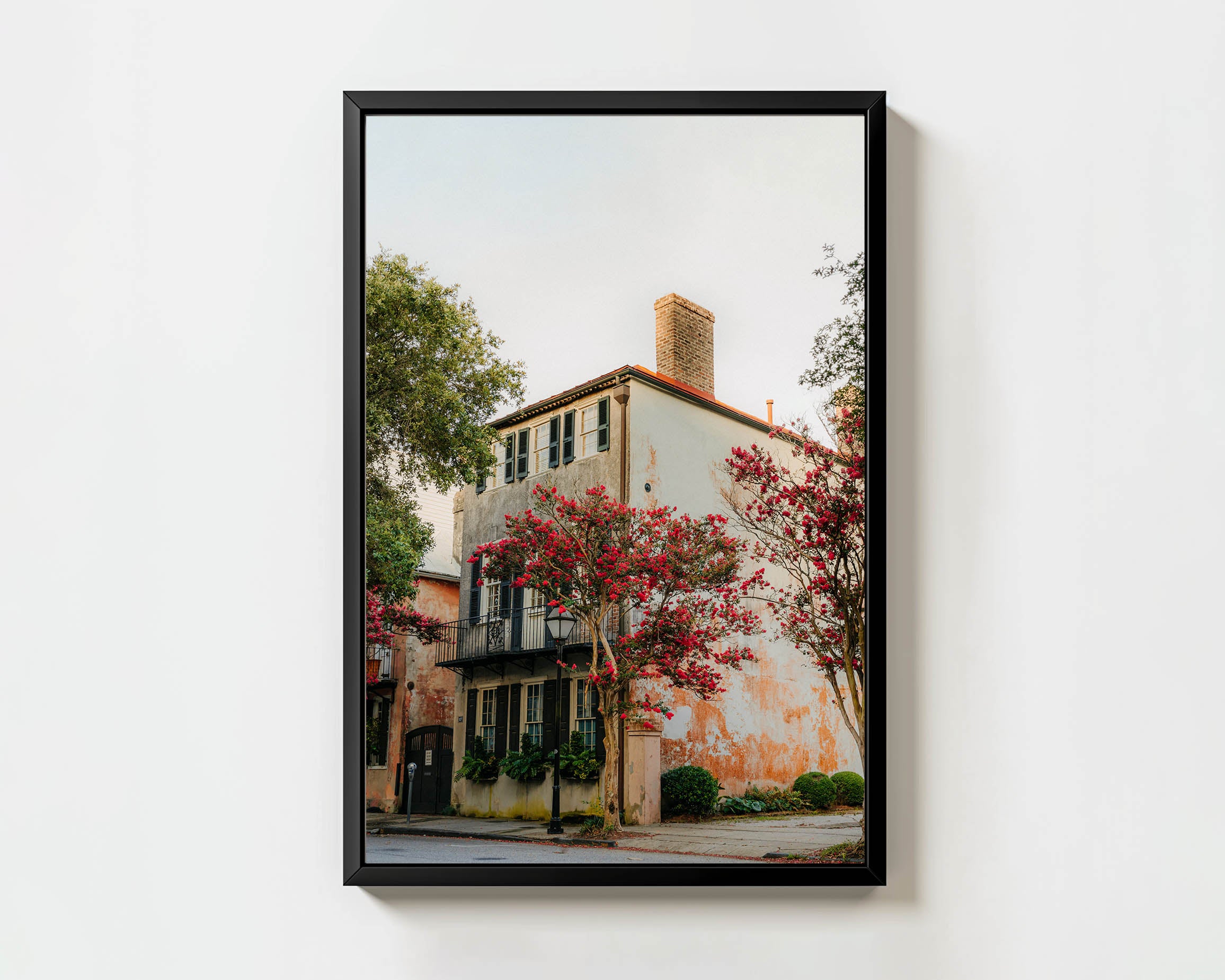 The rich color palette of this scene felt like a muse before I even lifted my camera. The warm, sun-faded stucco, the deep greens of the shutters, the bold reds of the crepe myrtles. All of it pulled me in, making me want to pick up a paintbrush. Charleston has a way of blending history and beauty so effortlessly, where time wears on the walls but never on the charm. I love this photograph because it captures exactly what I look for. The places that stand still, that hold onto their stories, that remind me why I chase color, light, and texture the way I do.